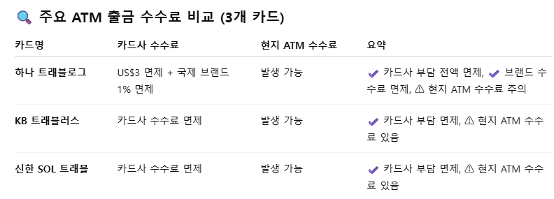 또한 카드사별로 해외 ATM 출금 수수료 무료를 내세우고 있지만 현지 ATM 수수료는 발생한다는 점 기억하세요.